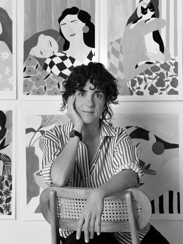 Il suo lavoro si sviluppa principalmente attorno a un mondo di figure femminili, fiori e piante. Ama giocare con il colore, la luce e la geometria, esplorando diverse tecniche e materiali come illustrazione, ceramica, tessile e pittura.
